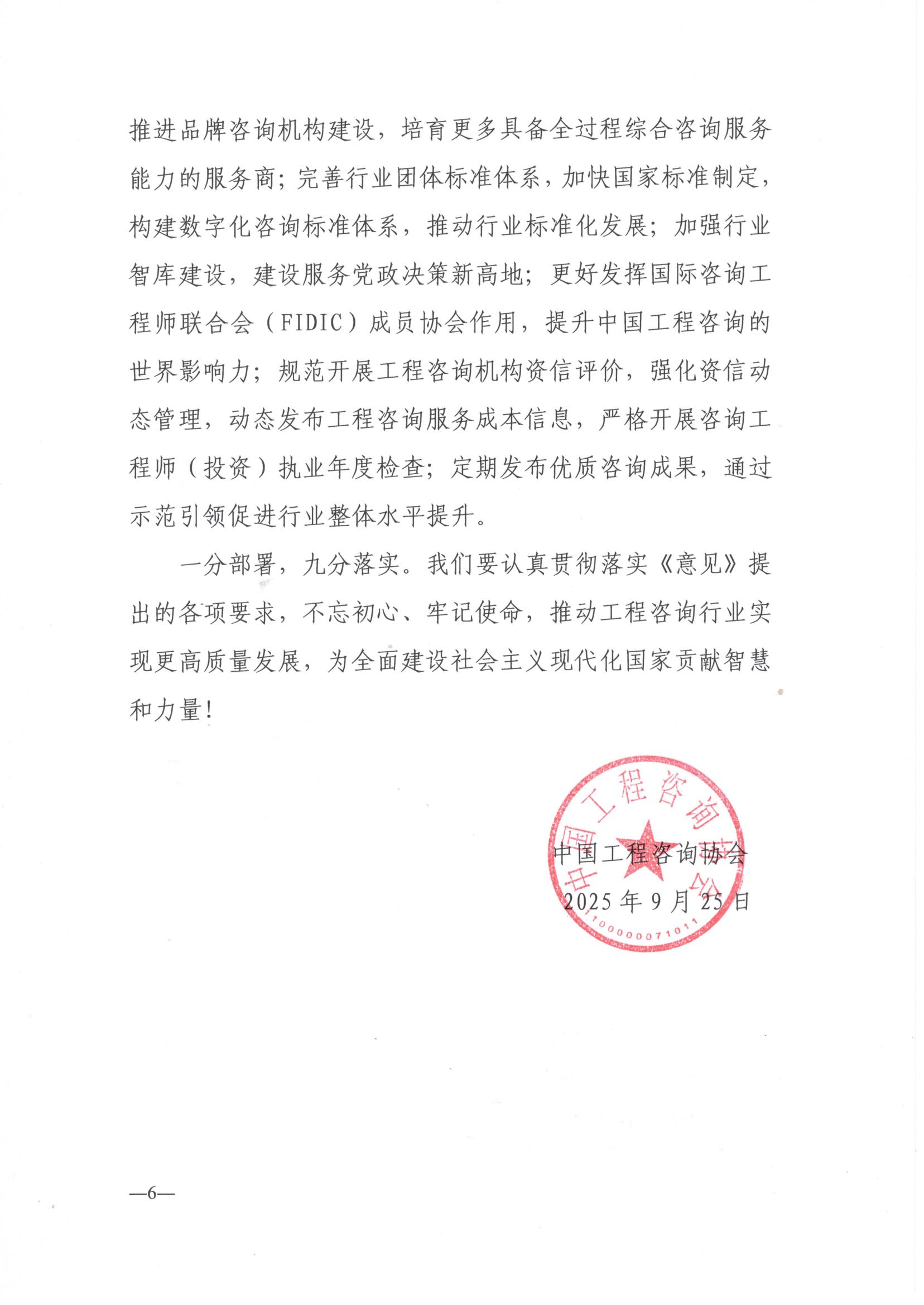 中国工程咨询协会关于贯彻落实《关于加快推动工程咨询行业高质量发展的意见》的通知