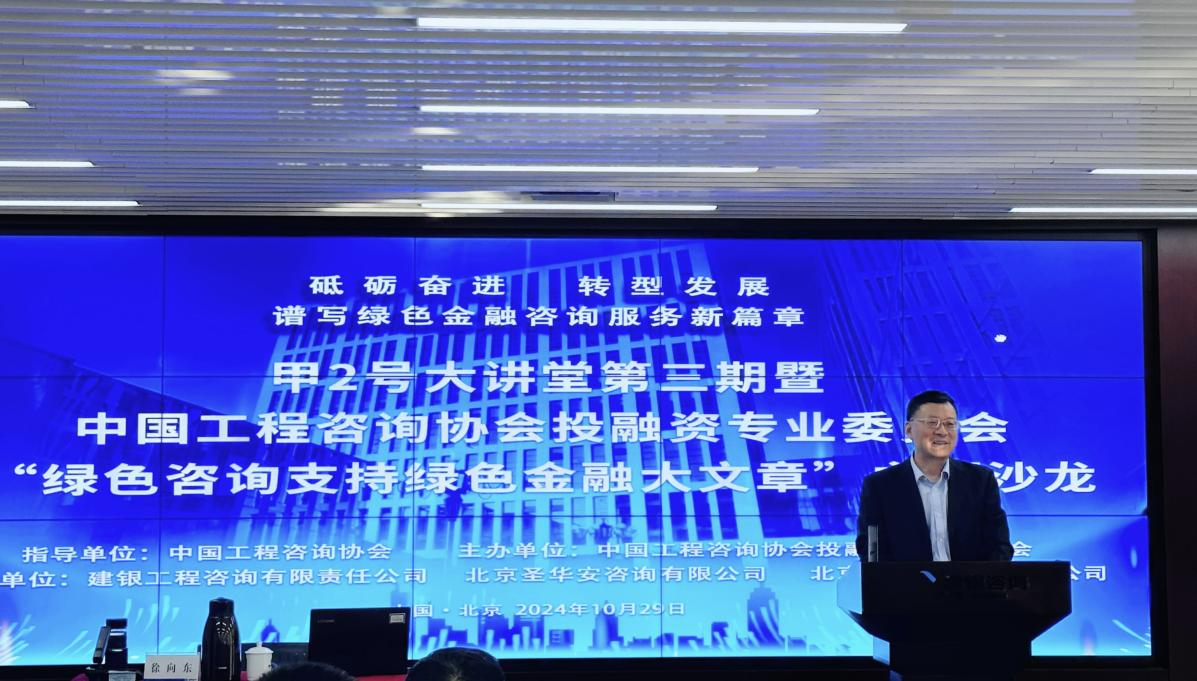 2024年10月29日,中国工程咨询协会投融资专业委员会在北京成功举办了“绿色咨询支持绿色金融大文章”主题沙龙。本次沙龙由建银工程咨询有限责任开云(中国)Kaiyun·官方网站、北京财指南咨询有限开云(中国)Kaiyun·官方网站和北京圣华安咨询有限开云(中国)Kaiyun·官方网站承办。建银咨询副总裁、执行董事唐晓阳,业务总监阙金声、刘海涛等领导出席,沙龙活动由专委会秘书长阙金声主持。
