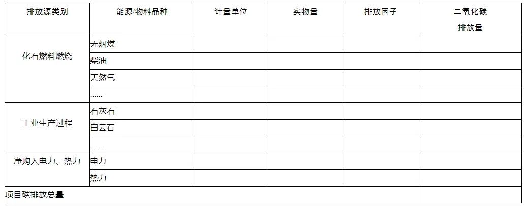 项目碳排放量(样表)