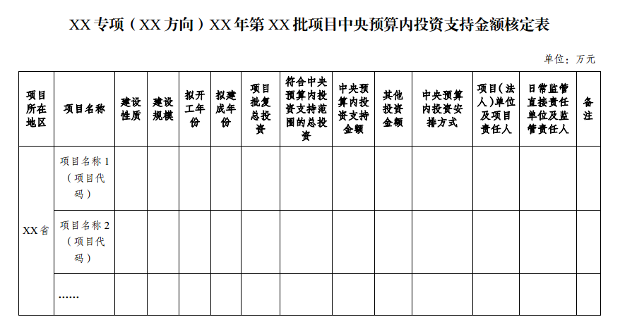 二、在附表中,应当明确每个项目的中央预算内投资支持金额,并在“备注”栏中注明“本次批复资金申请报告”。