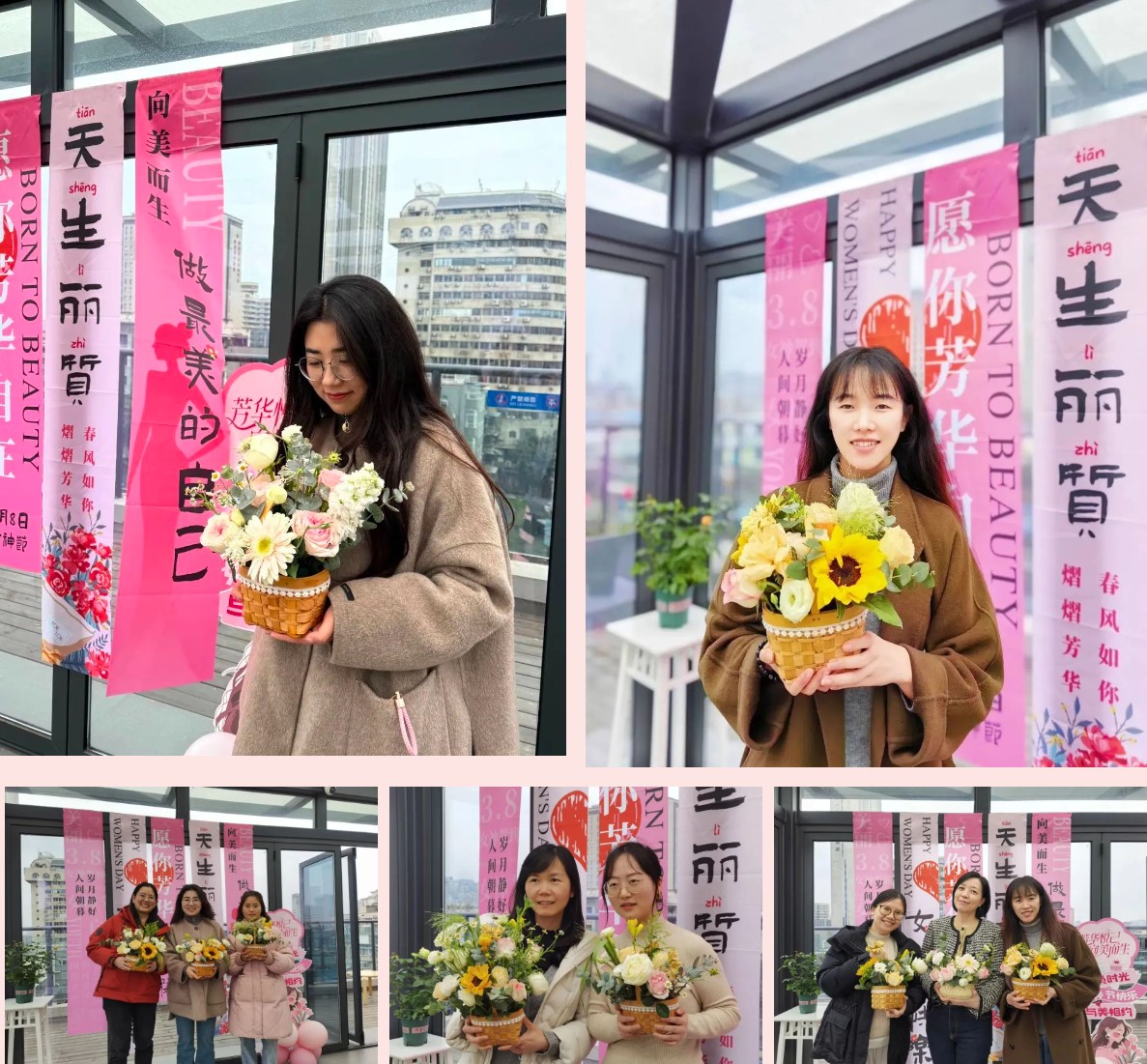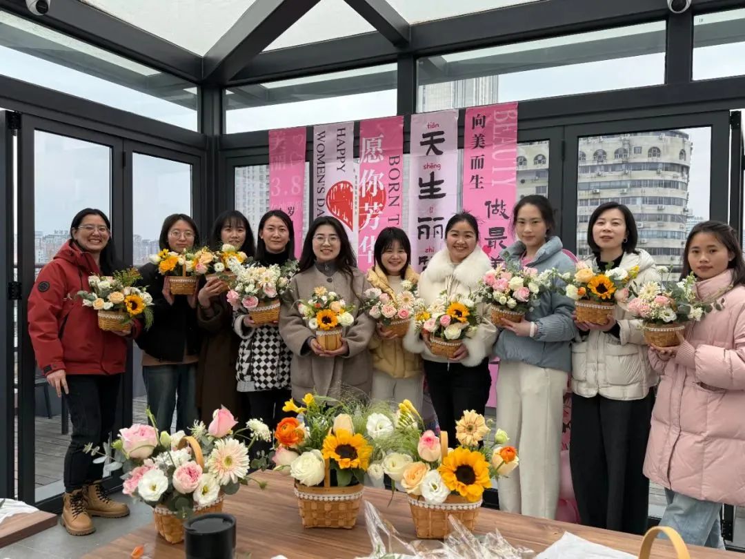 活动最后,大家纷纷展示自己的花艺作品,并合影留念。每一件作品都凝聚了女职工们的创意与心意,每一张笑脸都记录下了这美好的时刻。